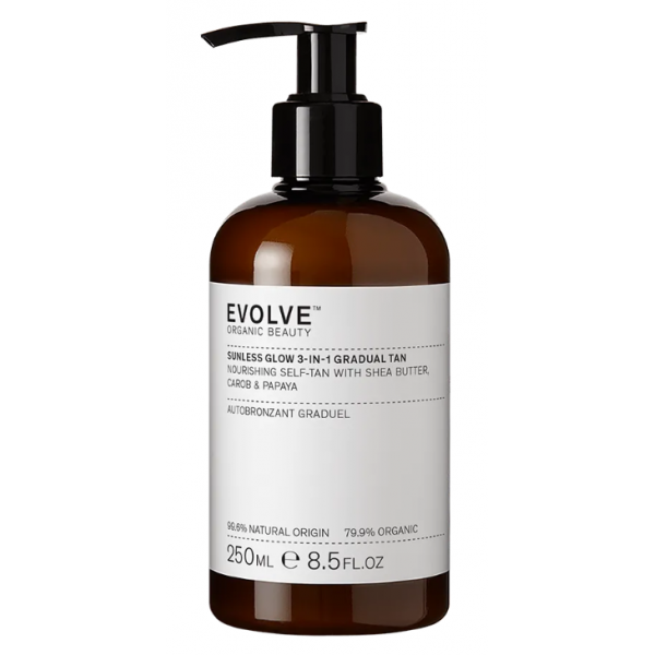 Barojošais pašiedeguma losjons „Sunless Glow 3-IN-1“ piešķir vienmērīgu zeltainu mirdzumu visu gadu. Bagātināts ar šī sviestu un hialuronskābi – intensīvi mitrina un baro ādu. Ātri iesūcas, neatstāj svītras, ar patīkamu, smalku aromātu. Piemērots visiem ādas tipiem.
