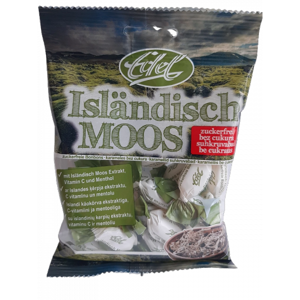 Ar Islandes ķērpja ekstraktu, C vitamīnu un mentolu.