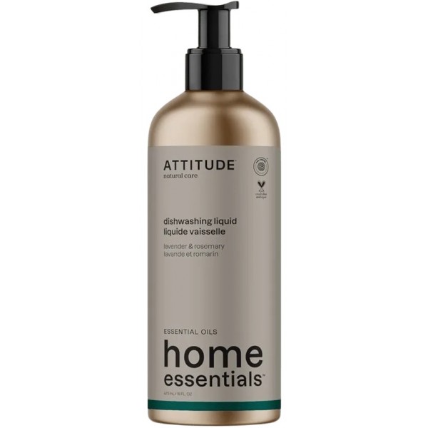 „Attitude“ trauku mazgāšanas līdzeklis ar lavandas un rozmarīna aromātu. Efektīvi noņem pārtikas atlikumus vai taukus no traukiem, bet nesausina roku ādu. Mazgāšanas līdzeklis ir paredzēts trauku mazgāšanai ar rokām.