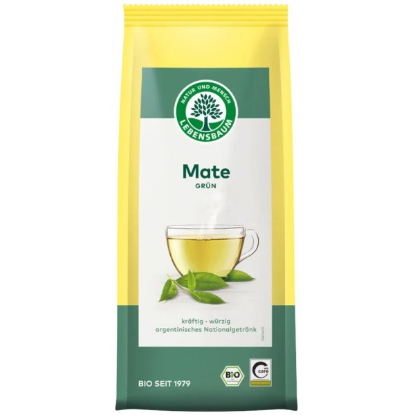 "Lebensbaum" ekoloģiska mate tēja ar spēcīgu un pilnīgu garšu. No Paragvajas ilekša (lat. Ilex paraguariensis) koka lapām gatavojamā mate tēja dabiski satur kofeīnu. Bez mākslīgiem aromatizētājiem. Ilgu laiku mate tēja bija pazīstama tikai Dienvidamerikā, tikai nesen to iecienījuši arī eiropieši.