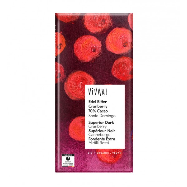 Sastāvdaļas: kakao masa*, nerafinēts niedru cukurs*, kakao sviests*, dzērveņu gabaliņi* 2,5%.